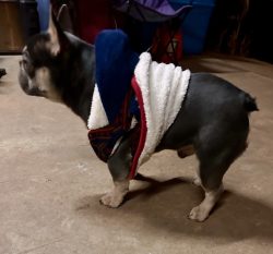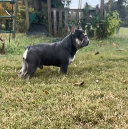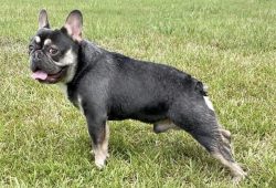 Cedric is one of our own productions. He is a blue and tan micro Frenchie. He is very buff and extremely short and compact. He is the smallest stud we have in our lineup, and he would be considered a Micro/ Minnie French Bulldog. He weighs 18 pounds and is only 11 inches tall and 12 inches long. He is built solid with thick shoulders and an extremely thick neck. He is the father to the smallest French Bulldog female we have, her name is Marshmallow and she only weighs 13 pounds. Cedric has great structure, a perfect little tail, small rounded ears, with a very flat face and a big beautiful head.